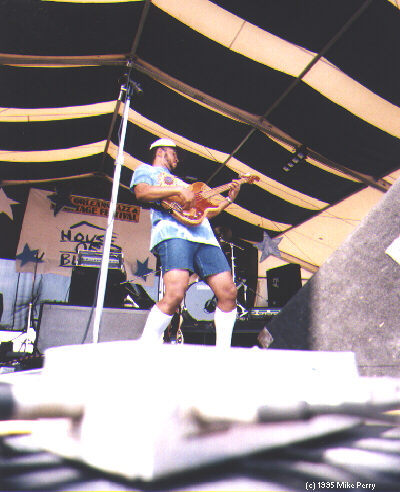 This is an interesting view of Bruce "Sunpie" Barnes during his performance at the House of Blues stage - to give you a little bit of an idea of what it looks like when you're performing at the festival - rising above a sea of people...